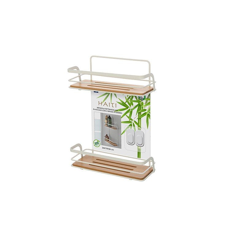 Mensola due ripiani in acciaio bianco e bambu Haiti
