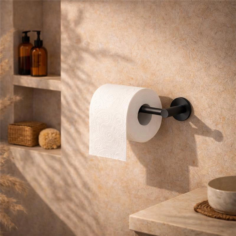 Realizzato in acciaio di alta qualità con finitura nero opaco, il portarotolo offre solidità, resistenza alla corrosione e durabilità superiore. L’acciaio cromato è facile da pulire e mantiene la brillantezza nel tempo, rendendolo perfetto per l’uso quotidiano in ambienti umidi come il bagno. La sua superficie liscia impedisce l’accumulo di sporco, facilitando la manutenzione.