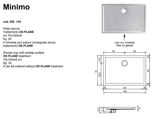 Minimo Piatto Doccia Antiscivolo 70x100 Bianco Lucido