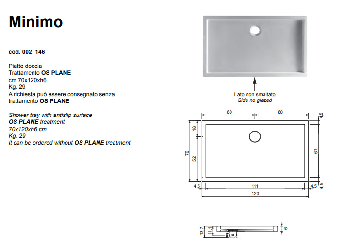 Minimo Piatto Doccia Antiscivolo 70x120 Nero Lucido