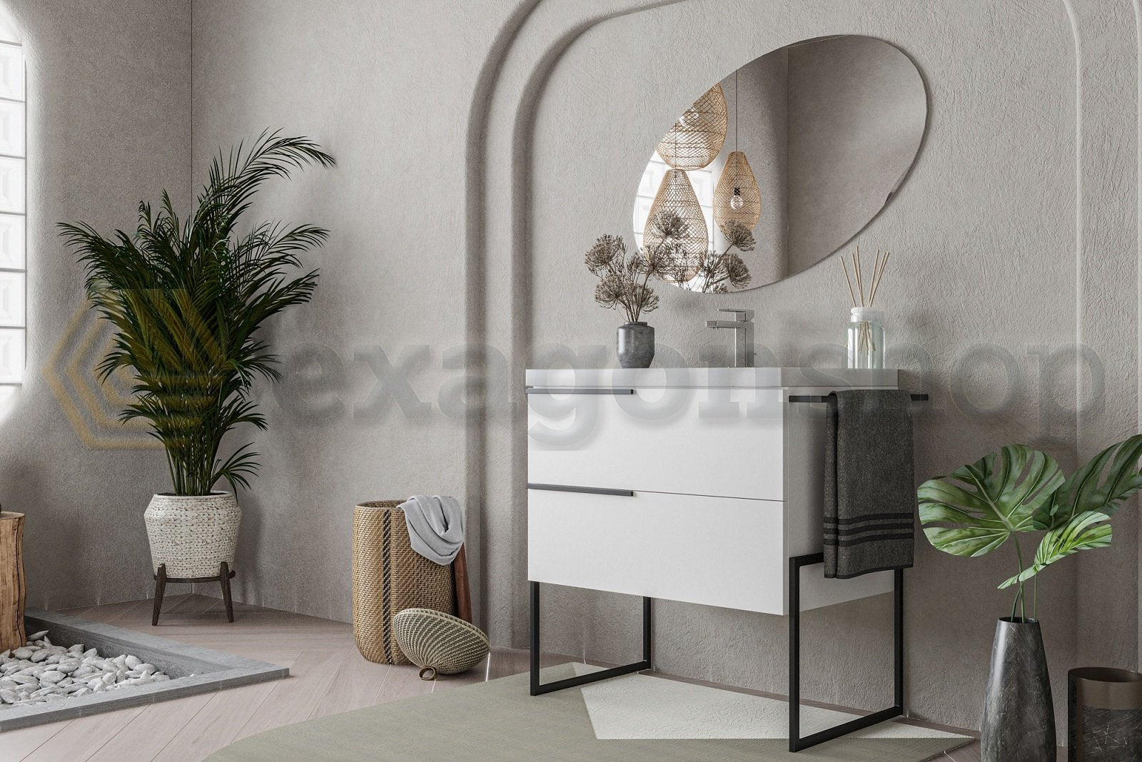 Questo mobile bagno unisce stile e funzionalità, offrendoti un'opzione versatile per l'arredamento del tuo bagno. Con il suo design elegante e i dettagli in metallo nero, aggiungerà un tocco di classe al tuo spazio bagno.