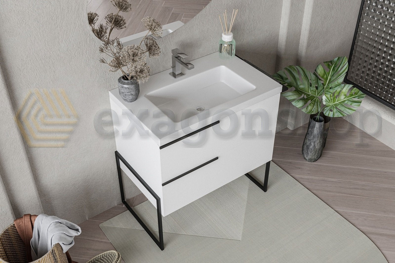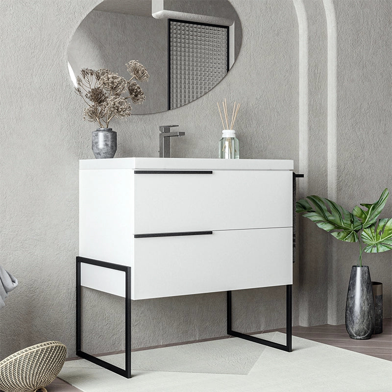 Il mobile bagno a pavimento con dimensioni di 80x45 è una scelta pratica e moderna per l'arredamento del tuo bagno. Caratterizzato da una struttura in finitura bianco lucido, questo mobile aggiunge eleganza e luminosità al tuo spazio. Le maniglie e i piedi in metallo nero opaco conferiscono un tocco di stile contemporaneo.