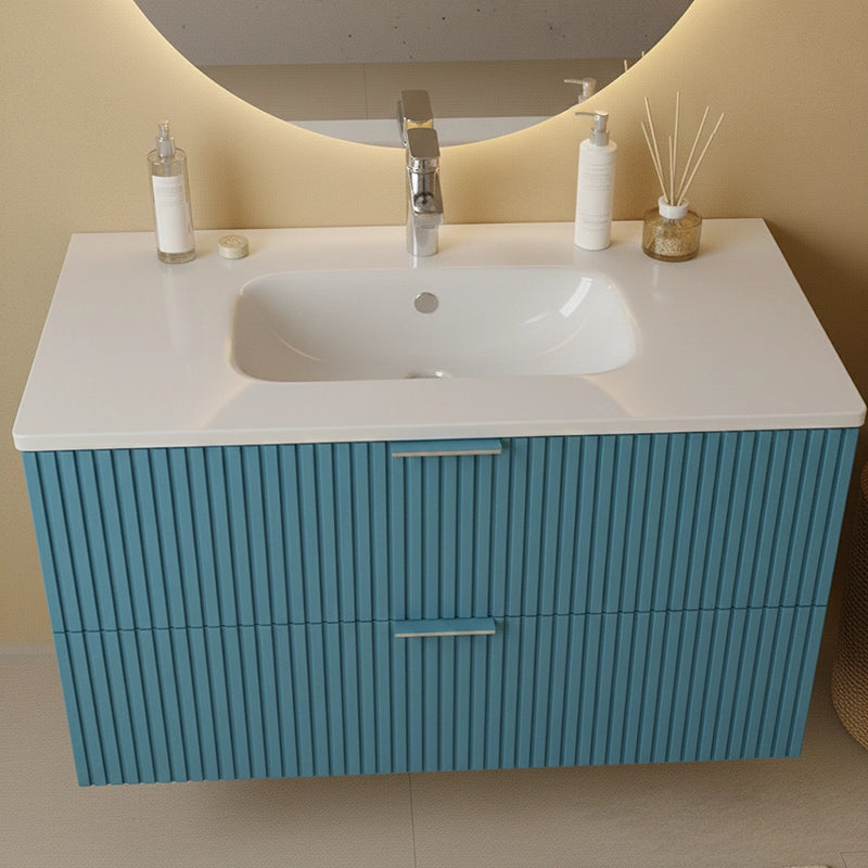 Mobile bagno 82x47 azzurro opaco cannettato Teramo con lavabo in ceramica