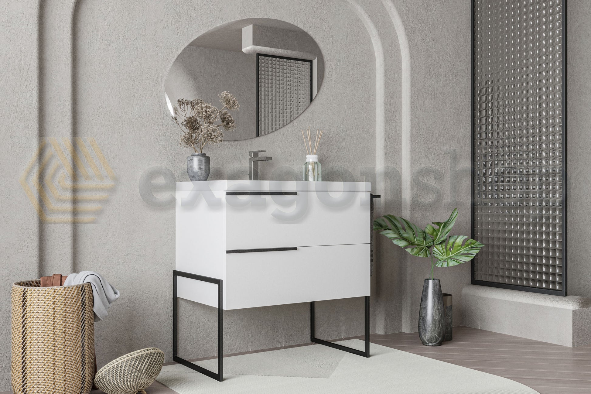 Il mobile bagno a pavimento Venezia, con dimensioni 100x45 cm, unisce design classico e modernità, offrendo funzionalità e stile in un unico elemento d’arredo. Caratterizzato da due cassetti capienti, un lavabo integrato e un pratico portasciugamani in metallo nero opaco, questo mobile si distingue per le sue forme lineari e l’eleganza dei piedi in metallo nero opaco, che aggiungono un tocco di raffinatezza al design complessivo.