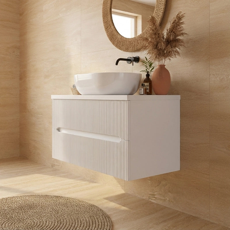 Mobile bagno bianco opaco 90x46 cannettato Urbino con ciotola appoggio in ceramica