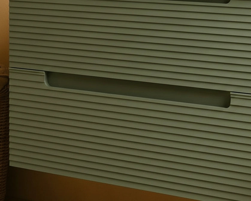 Il frontale del mobile presenta caratteristici canali solcati che aggiungono un tocco di originalità e stile all'ambiente bagno. Le maniglie sono incassate nel frontale, garantendo una linea pulita e senza sporgenze. Le finiture opache conferiscono un aspetto elegante e contemporaneo al mobile, che si adatta perfettamente agli stili di arredamento moderni.