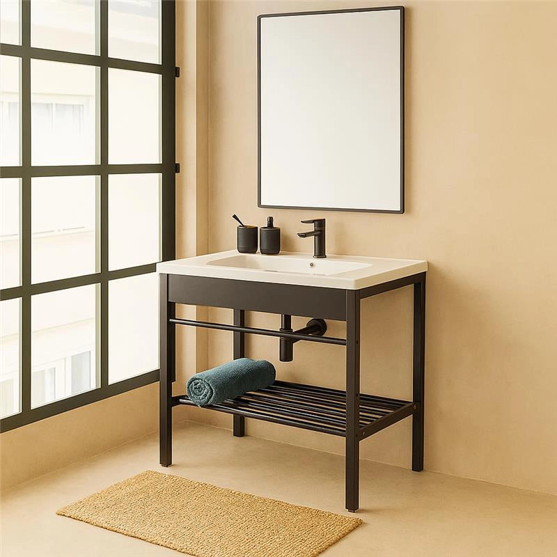 - Struttura in Metallo Nero: La robusta struttura in metallo nero non solo garantisce durabilità, ma conferisce anche un tocco di modernità e stile industriale al bagno.