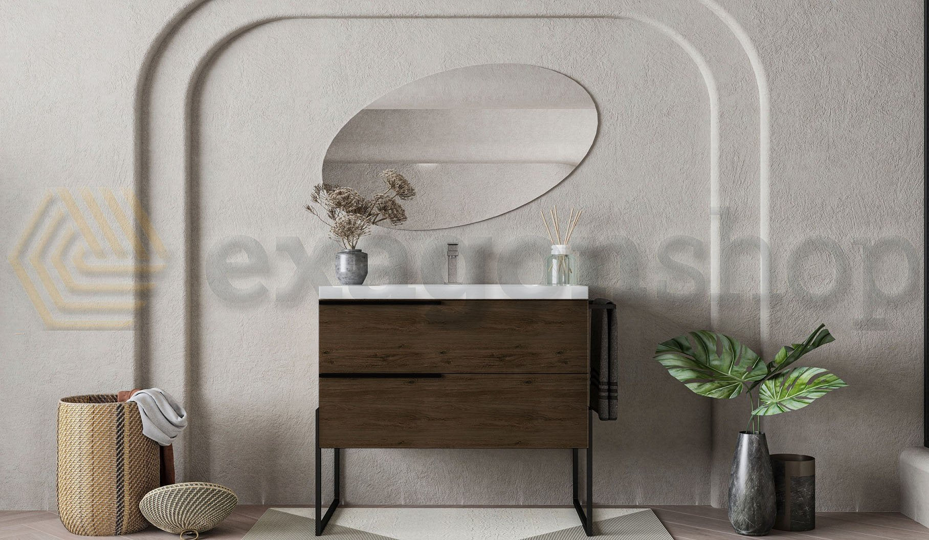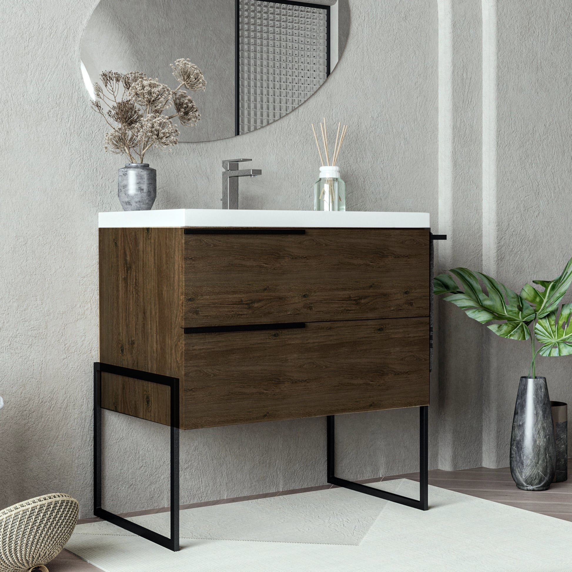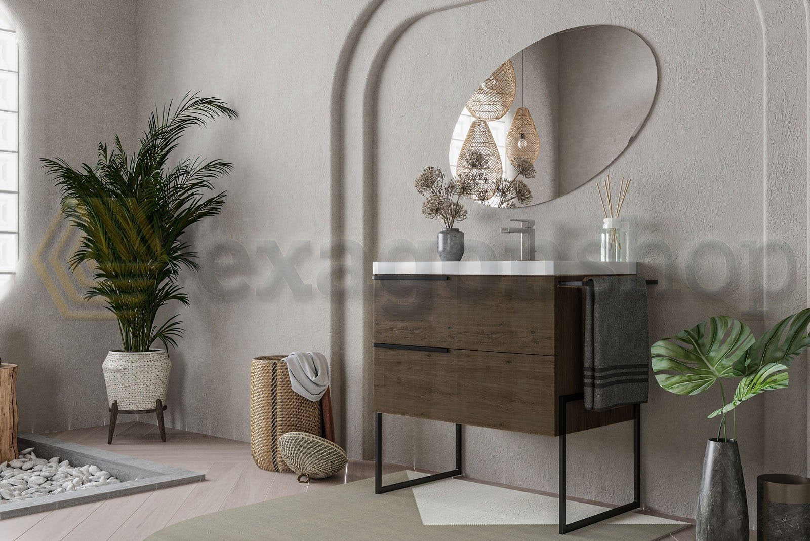 Mobile bagno Olmo scuro 80x45 Venezia a pavimento con lavabo e portasciugamani