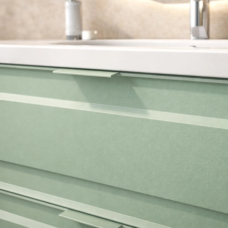 La cornice salvia opaco incornicia con eleganza i due cassetti, creando un dettaglio raffinato che dona personalità all’ambiente. Questa tonalità naturale e contemporanea si inserisce armoniosamente sia in contesti moderni sia in ambienti più classici, aggiungendo freschezza e profondità visiva. La finitura opaca valorizza le superfici e contribuisce a un’estetica sofisticata.