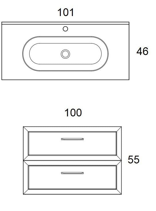 Mobile bagno sky blue 100x45 Praga due cassetti soft close con lavabo in ceramica