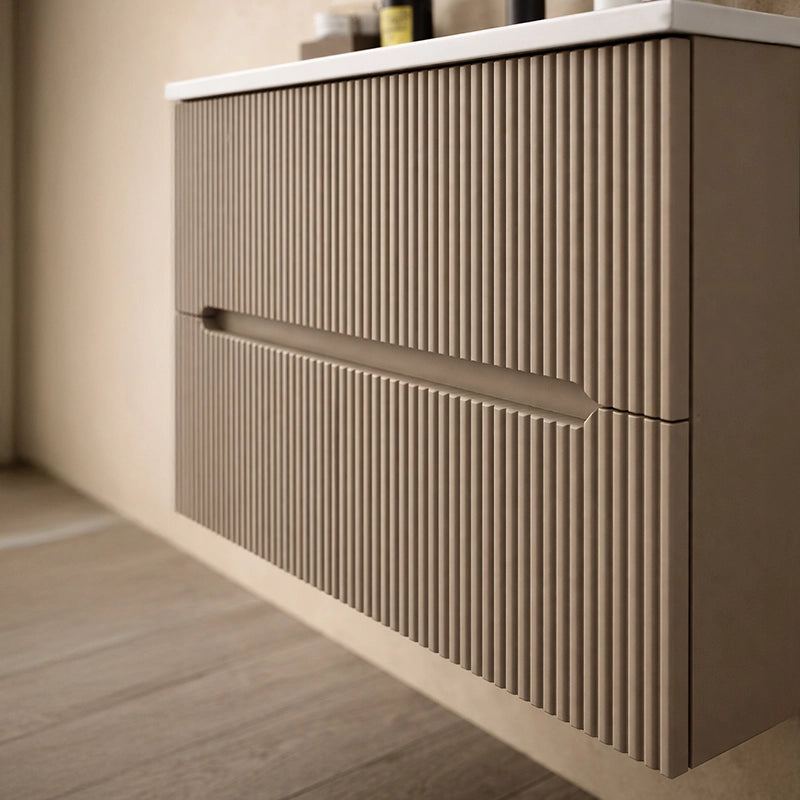 Il mobile da bagno Urbino è la sintesi perfetta dell'eleganza Made in Italy. Caratterizzato da un design sofisticato e moderno, questo mobile si distingue per il suo esclusivo frontale cannettato, una lavorazione tridimensionale che dona ritmo e stile a qualsiasi ambiente bagno. La finitura Tortora Opaco è la scelta ideale per chi cerca un colore caldo, neutro e di tendenza, capace di trasmettere un'immediata sensazione di relax e accoglienza.