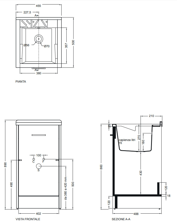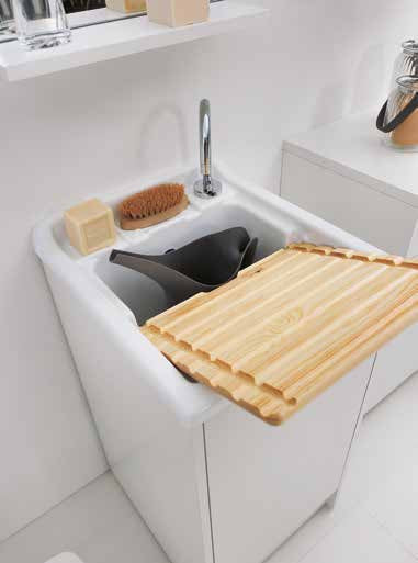 Fornito di vasca lavapanni in ABS metacrilato lucido, tavola di lavaggio in legno massello, sifone e troppo pieno.