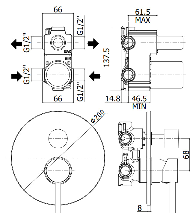 Paffoni Birillo Bi018 Miscelatore Incasso Doccia 2 Uscite Cromo
