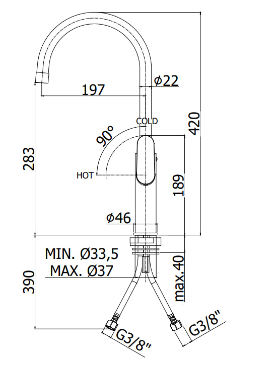 Il design alto del miscelatore offre ampio spazio sotto la canna, consentendoti di utilizzare agevolmente pentole, padelle e altri utensili di grandi dimensioni. Questa caratteristica rende il lavaggio e il riempimento del lavello più comodi e pratici.