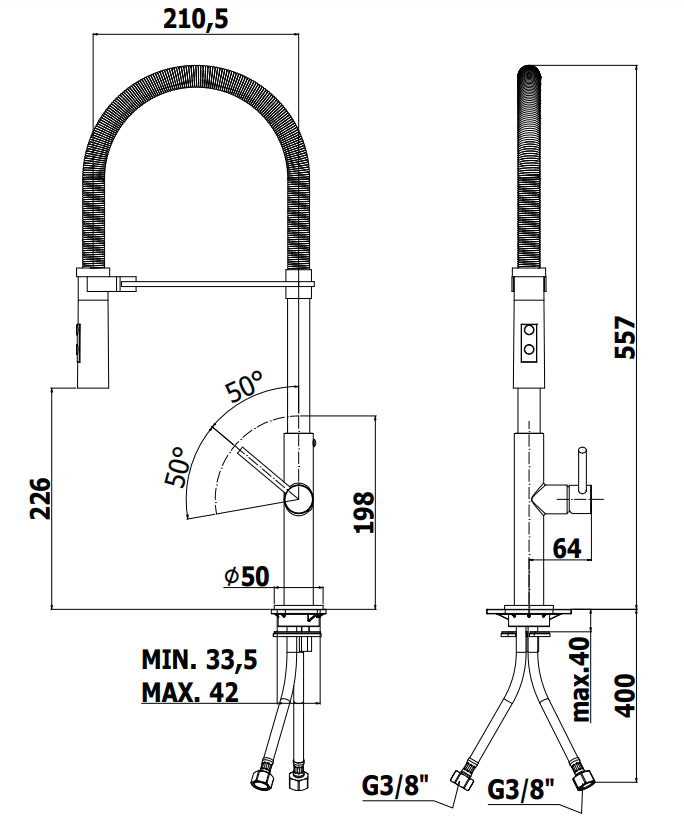 Paffoni Chef Ch179 Professional Miscelatore Lavello Cucina Con Braccio Di Erogazione Flessibile Cromo