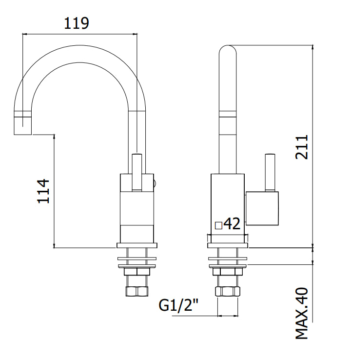 Paffoni Level Lea091 Miscelatore lavabo Monocomando solo acqua fredda con canna ad ombrello Cromo