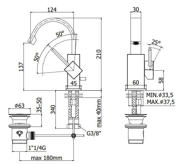 Paffoni Level Lea837 Rubinetto bidet Monocomando Con Piletta Cromo