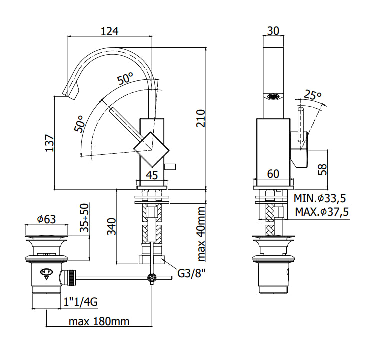 - Facile da utilizzare: La leva sulla parte superiore del miscelatore consente di regolare facilmente la temperatura e il flusso dell'acqua, offrendo un controllo preciso e comodo.