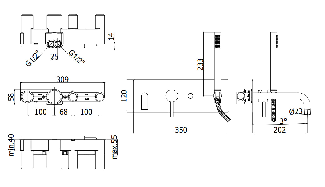 Paffoni Light Lig001no Miscelatore Vasca Incasso Con Deviatore a pulsante e Bocca Erogazione Nero Opaco