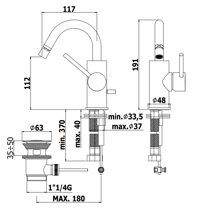 Questo miscelatore bidet è progettato per funzionare senza piletta, offrendo un design pulito e minimalista. La sua canna ad ombrello permette un'ampia copertura dell'area del bidet, assicurando un'esperienza di utilizzo confortevole e piacevole.