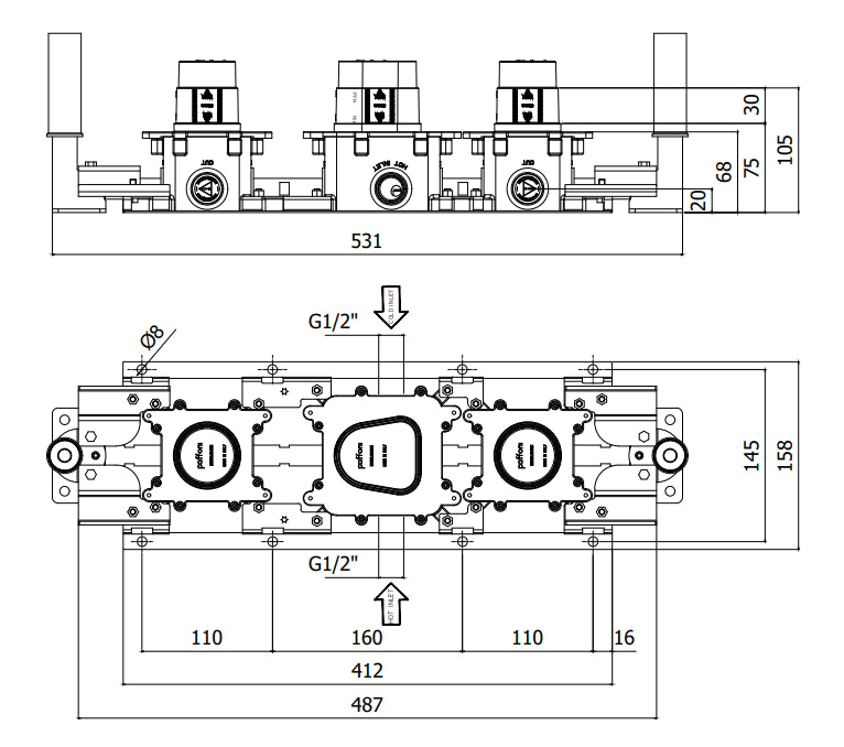 Paffoni Modular Box Mdbox001 Corpo Incasso Termostatico Incasso Doccia Vasca 2 Funzioni Con raccordo doccia