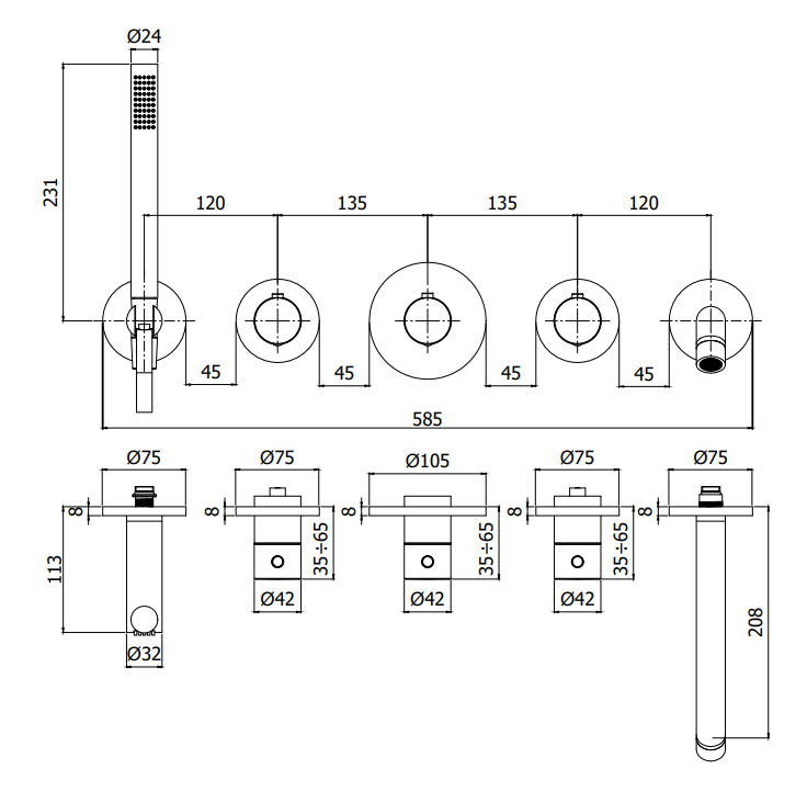 Questo set esterno vasca è dotato di un sistema termostatico che ti permette di regolare facilmente la temperatura dell'acqua desiderata, garantendo una doccia confortevole e sicura. Il design ergonomico e intuitivo ti consente di controllare con precisione la temperatura e il flusso dell'acqua.