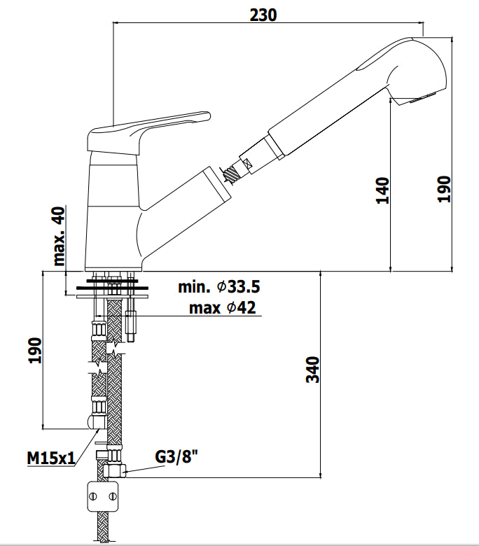 Il design monocomando del miscelatore consente di regolare con facilità il flusso dell'acqua e la temperatura con una sola leva, offrendo comodità e praticità durante l'utilizzo.