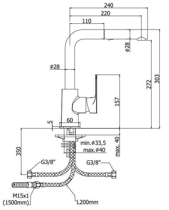Il design monocomando semplifica l'utilizzo del miscelatore, consentendoti di regolare facilmente la temperatura e il flusso dell'acqua attraverso una singola leva. Questo ti offre un controllo preciso e comodo durante l'utilizzo.