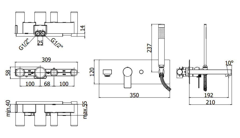 La bocca del miscelatore è progettata per erogare l'acqua in modo uniforme nella vasca, permettendoti di riempirla rapidamente e comodamente. Il set doccia incluso è dotato di una doccetta a mano e di un supporto a parete, offrendoti la possibilità di regolare l'altezza e l'angolazione della doccetta per una doccia personalizzata.