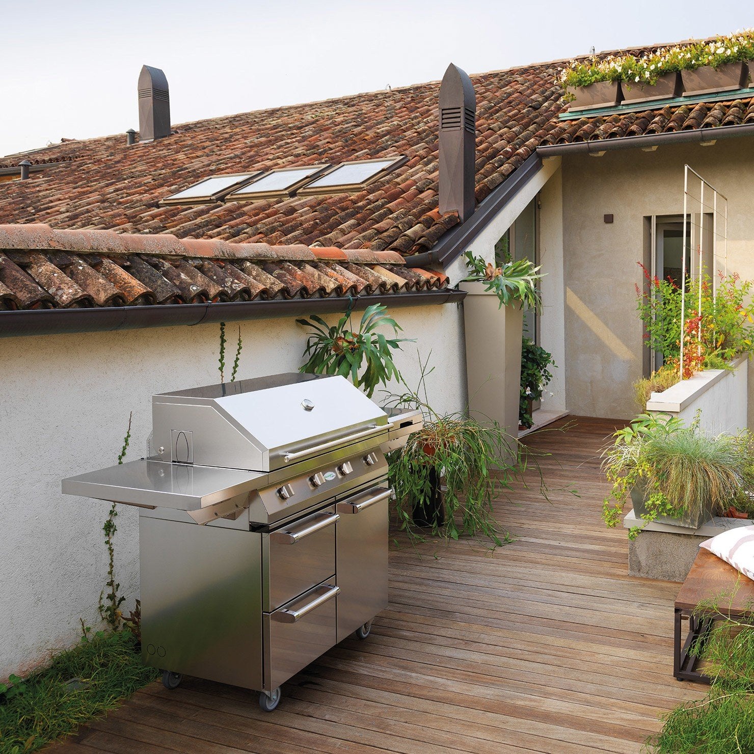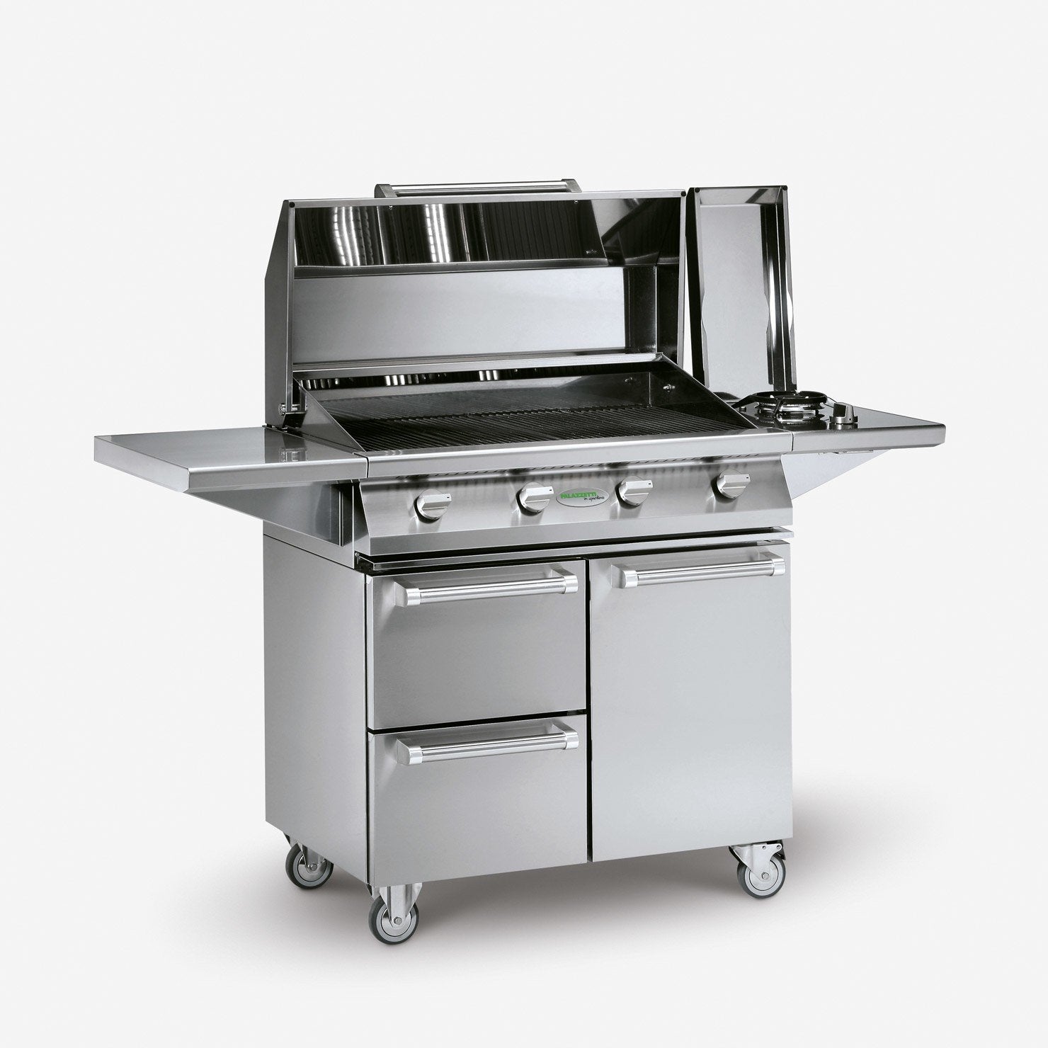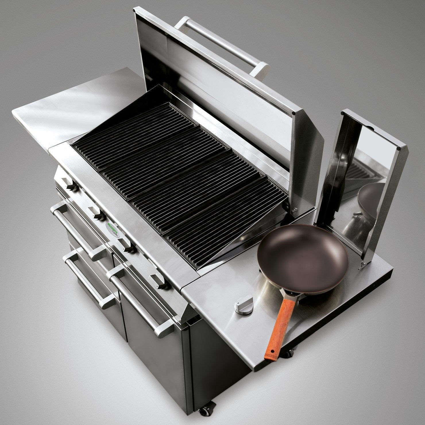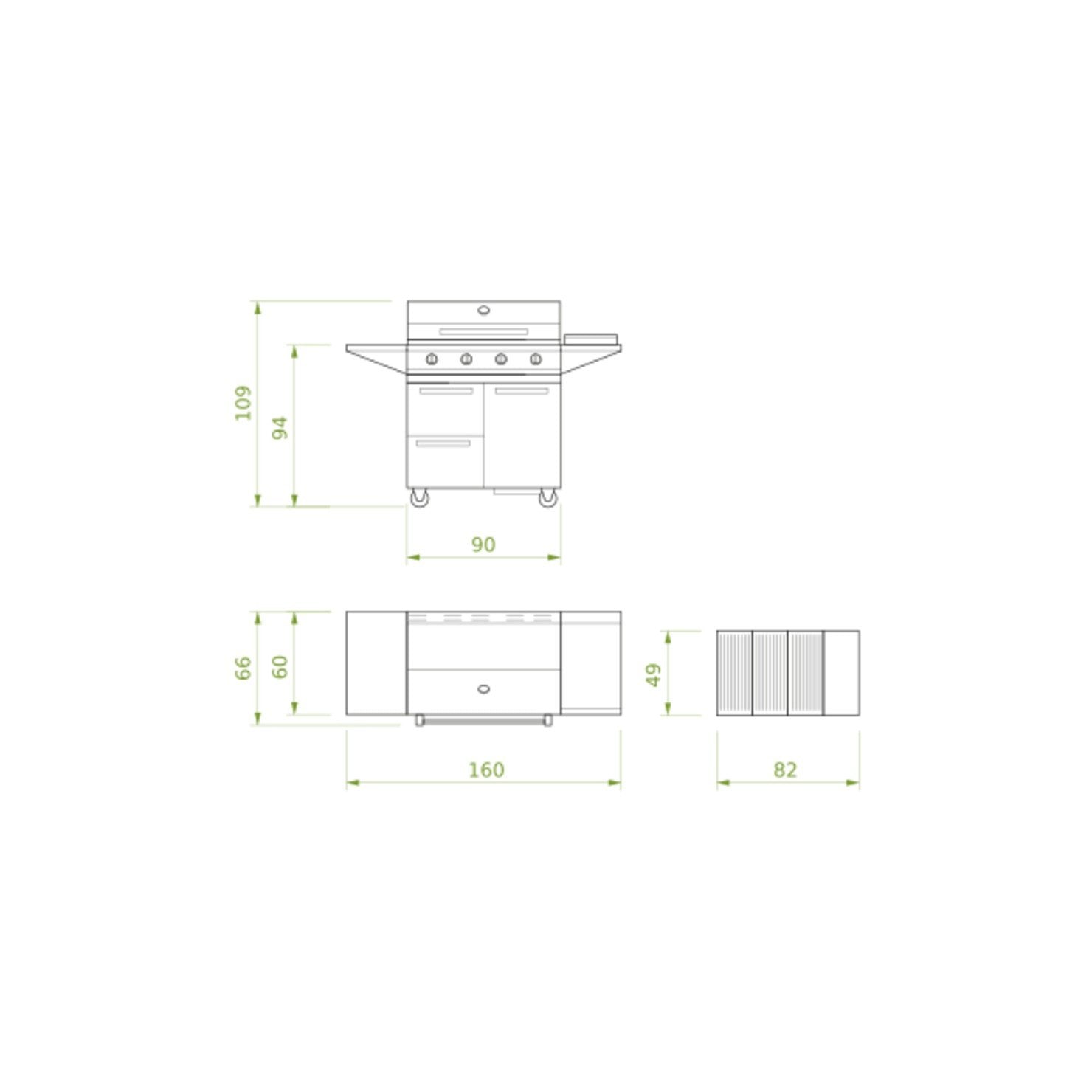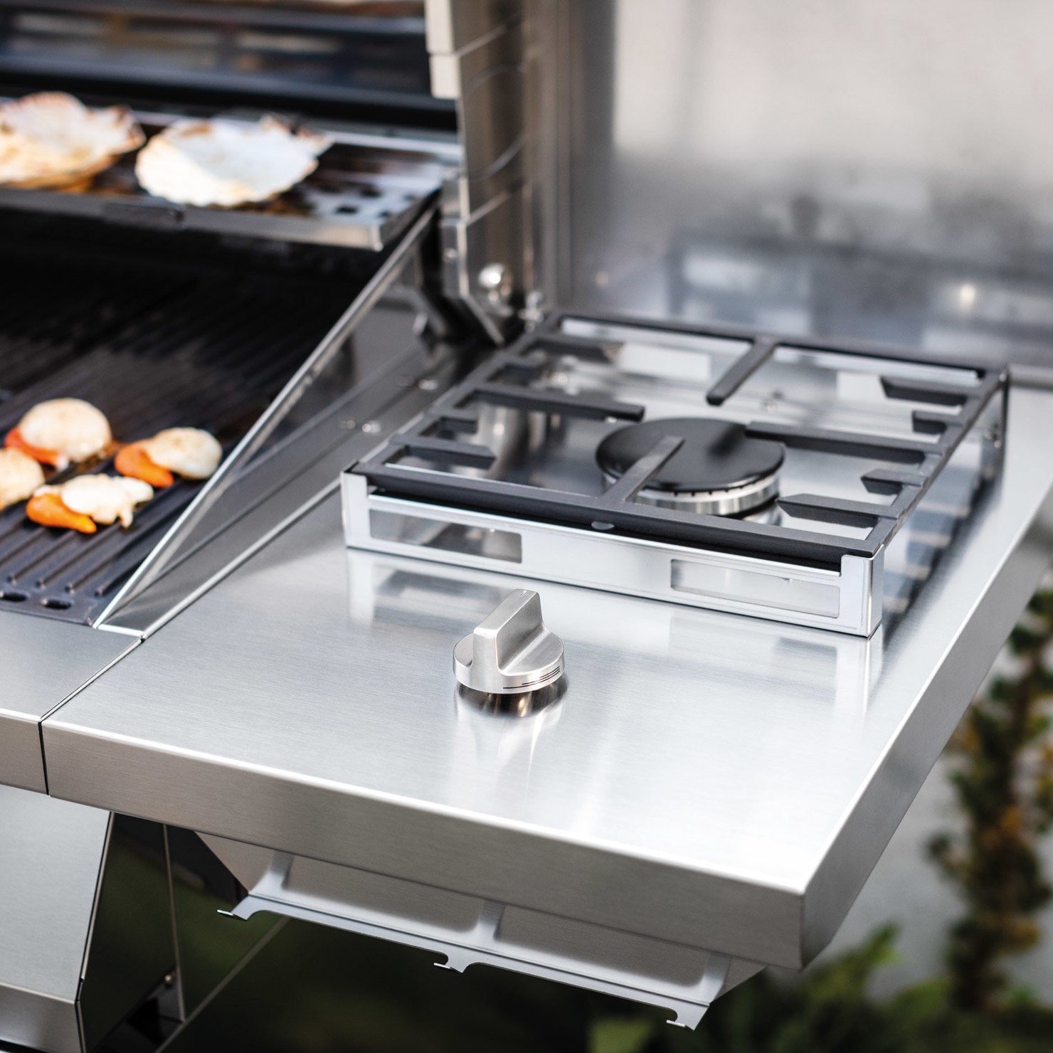 - Piano laterale con bruciatore inox e coperchio per preparare i cibi in modo conveniente.
