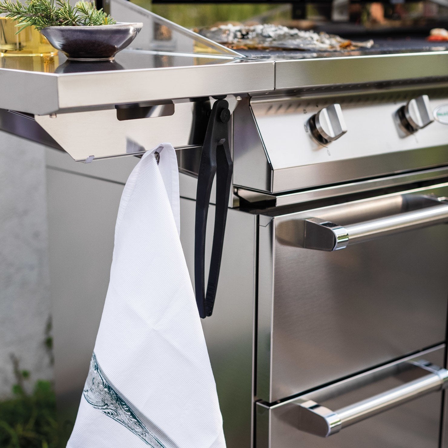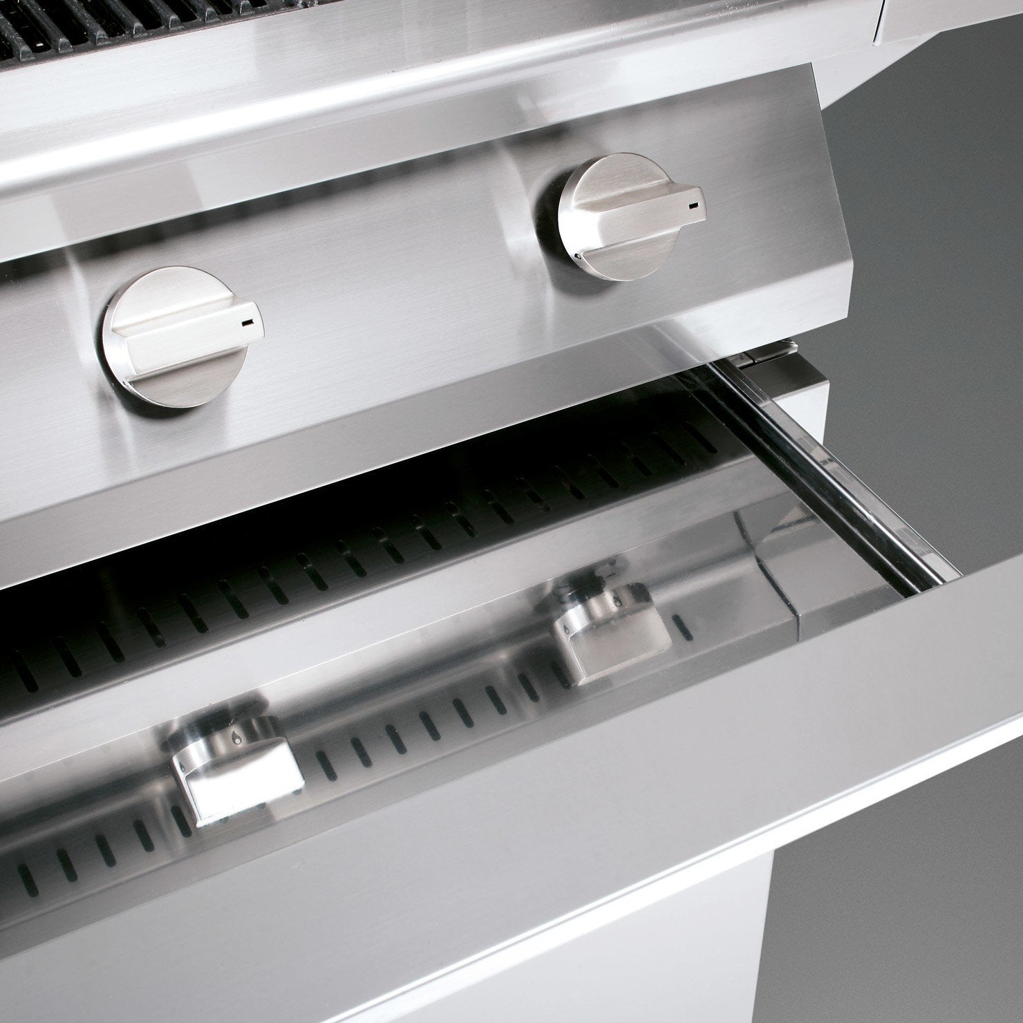 - Spazio di stoccaggio con cassetti in acciaio e scomparto per la bombola del gas da 10 kg.