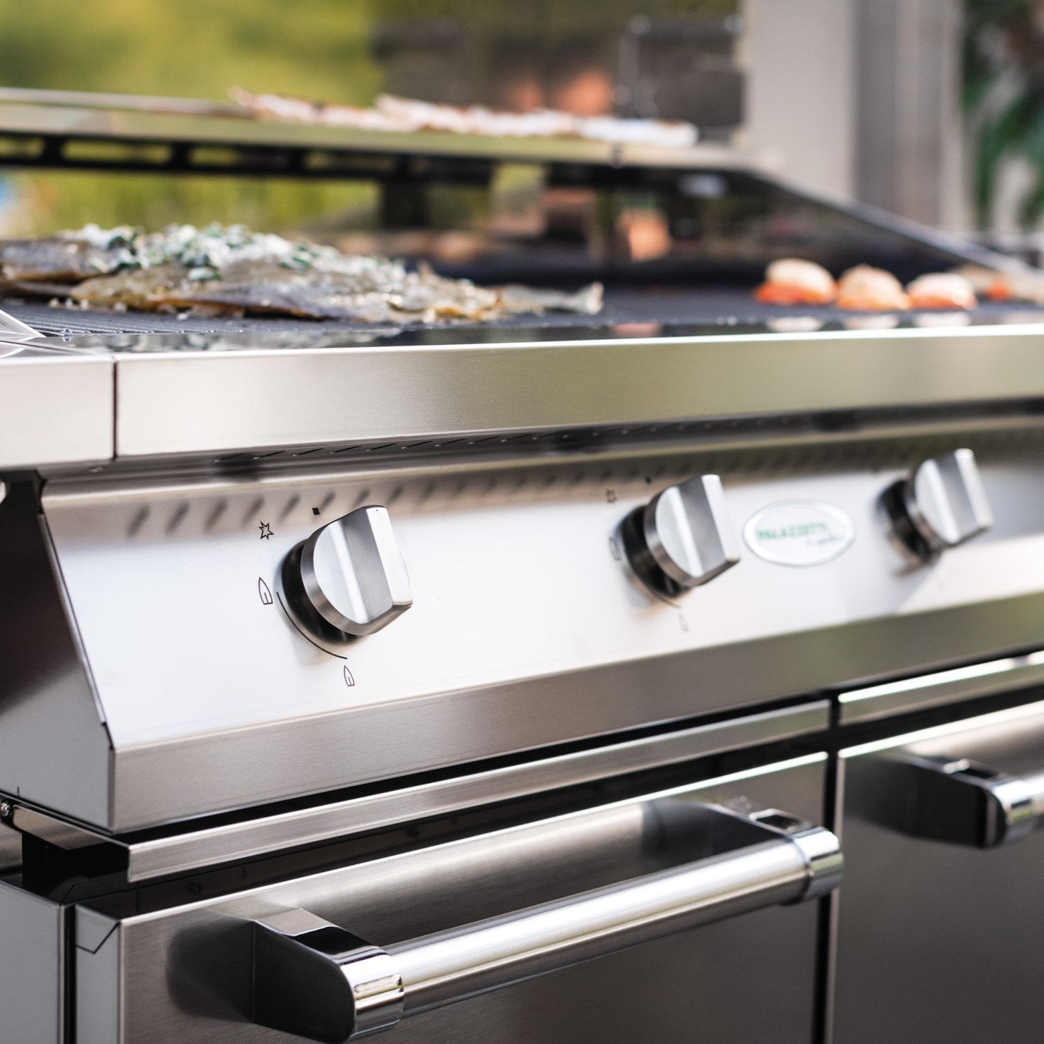Palazzetti Alain barbecue a gas portatile tre griglie e piastra in ghisa con coperchio in acciaio
