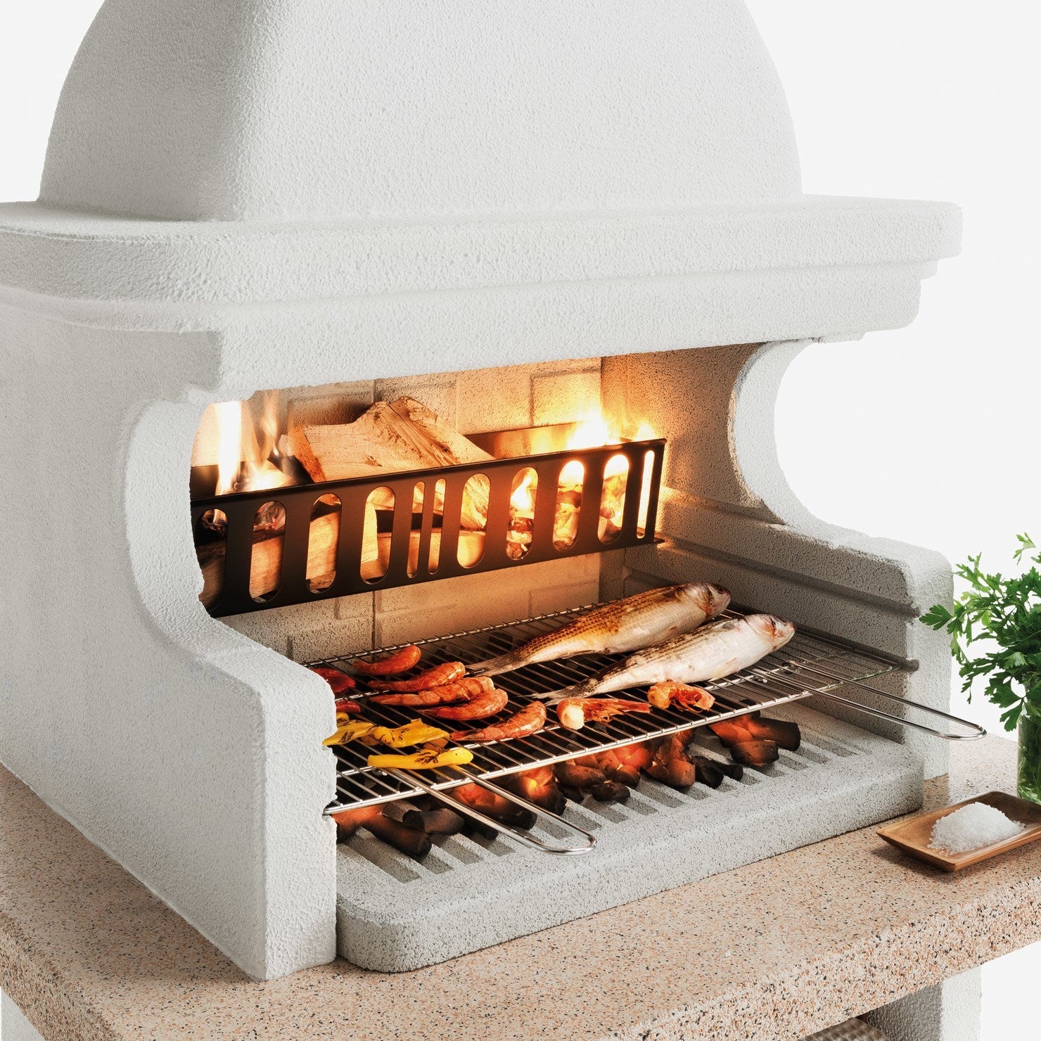 Il braciere portalegna da 76 cm è realizzato in metallo verniciato, offrendo una soluzione resistente e di facile manutenzione. Inoltre, il barbecue è dotato di una sottocappa metallica rinforzata che protegge la cappa dal calore dei fumi di combustione.