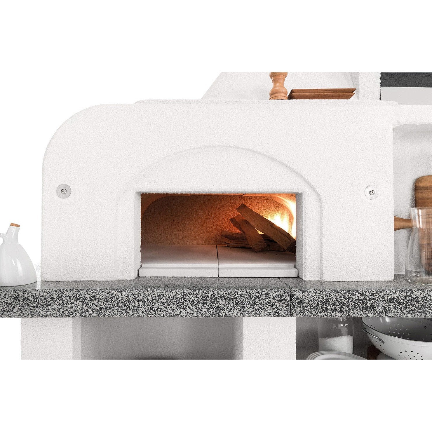 Palazzetti Antille 2 barbecue con forno a legna grezzo con braciere laterale con piano in Marmotech effetto granito grigio