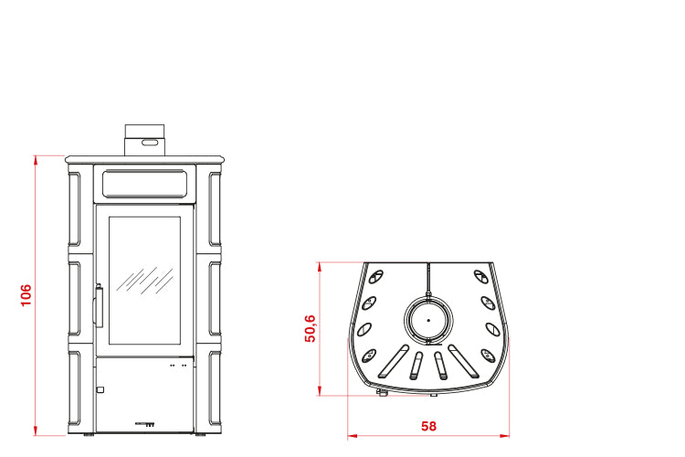• focolare in Magnofix® che ottimizza l'irraggiamento