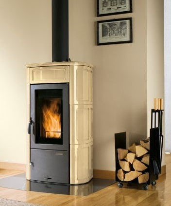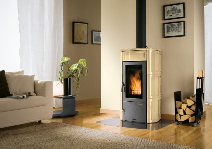 Palazzetti Elisa Stufa A Legna ad aria Con Rivestimento in ceramica Giallo Sahara