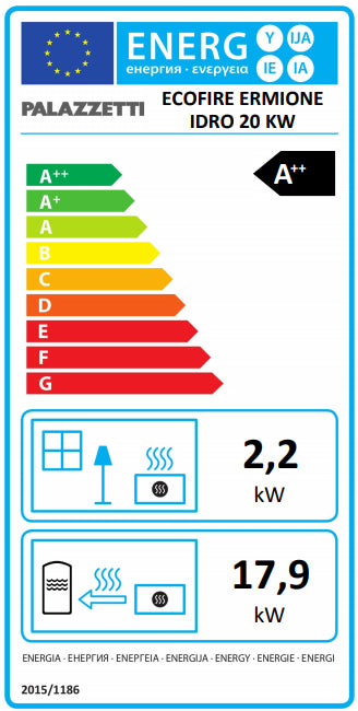 La stufa a pellet Palazzetti Ermione Idro 20 ACS è una stufa idro dalla forma stondata e con rivestimento in ceramica colorata.