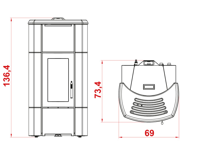 Dotata di un rivestimento esterno in ceramica colorata e di un grande vetro frontale che permette di ammirare le fiamme e una porta laterale per facilitare l'accesso al cassetto raccolta cenere. Con una potenza termica di 24 kW e una capacità di serbatoio di 18 kg di pellet, questa stufa è ideale per riscaldare ambienti di grandi dimensioni e garantisce una lunga autonomia di funzionamento.