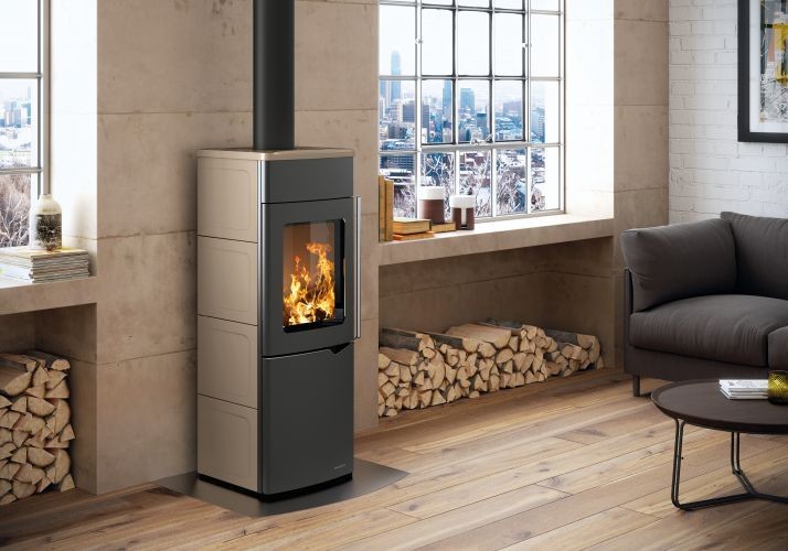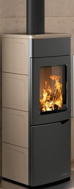 Palazzetti Eva S Stufa A Legna ad aria 8kw con porta verticale automatica in Ceramica Caffellatte
