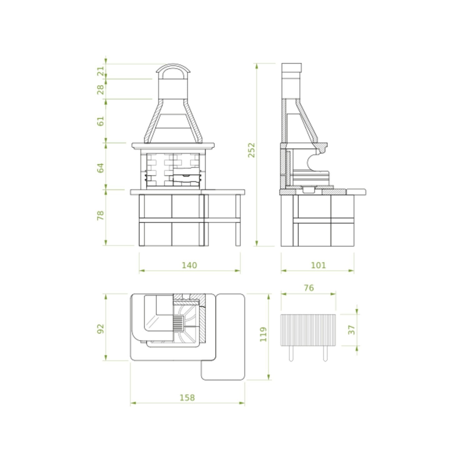 La struttura del Gallipoli 4 è realizzata in conglomerato cementizio, pronto per essere tinteggiato per adattarsi al tuo stile e all'ambiente circostante. I pratici vani porta-oggetti richiudibili con antine (optional non incluse) offrono spazio aggiuntivo per organizzare gli utensili e gli accessori necessari durante la preparazione dei tuoi pasti.