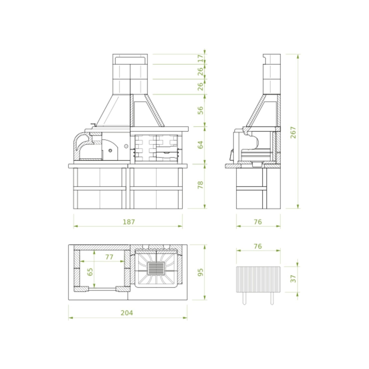L'area grill è dotata di un piano fuoco in materiale refrattario e di un materassino isolante. Il cassetto delle ceneri è dotato del sistema Fast-Fire Box, che favorisce la circolazione dell'aria, migliorando la combustione e facilitando la pulizia una volta che il fuoco si è spento.