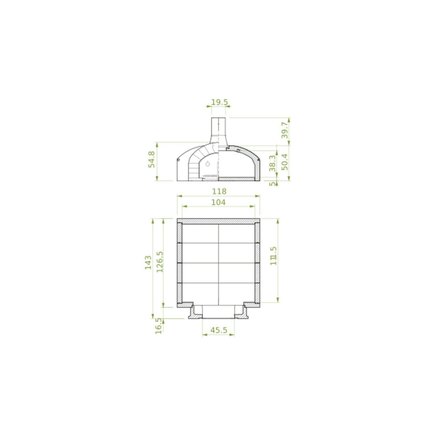 Questo magnifico forno a legna è realizzato interamente in refrattario di alta qualità, con una volta in refrattario vibropressato e una base fuoco in impasto refrattario colato. Grazie a questa costruzione impeccabile, il forno trattiene il calore in modo ottimale, garantendo una cottura perfetta dei tuoi piatti preferiti.