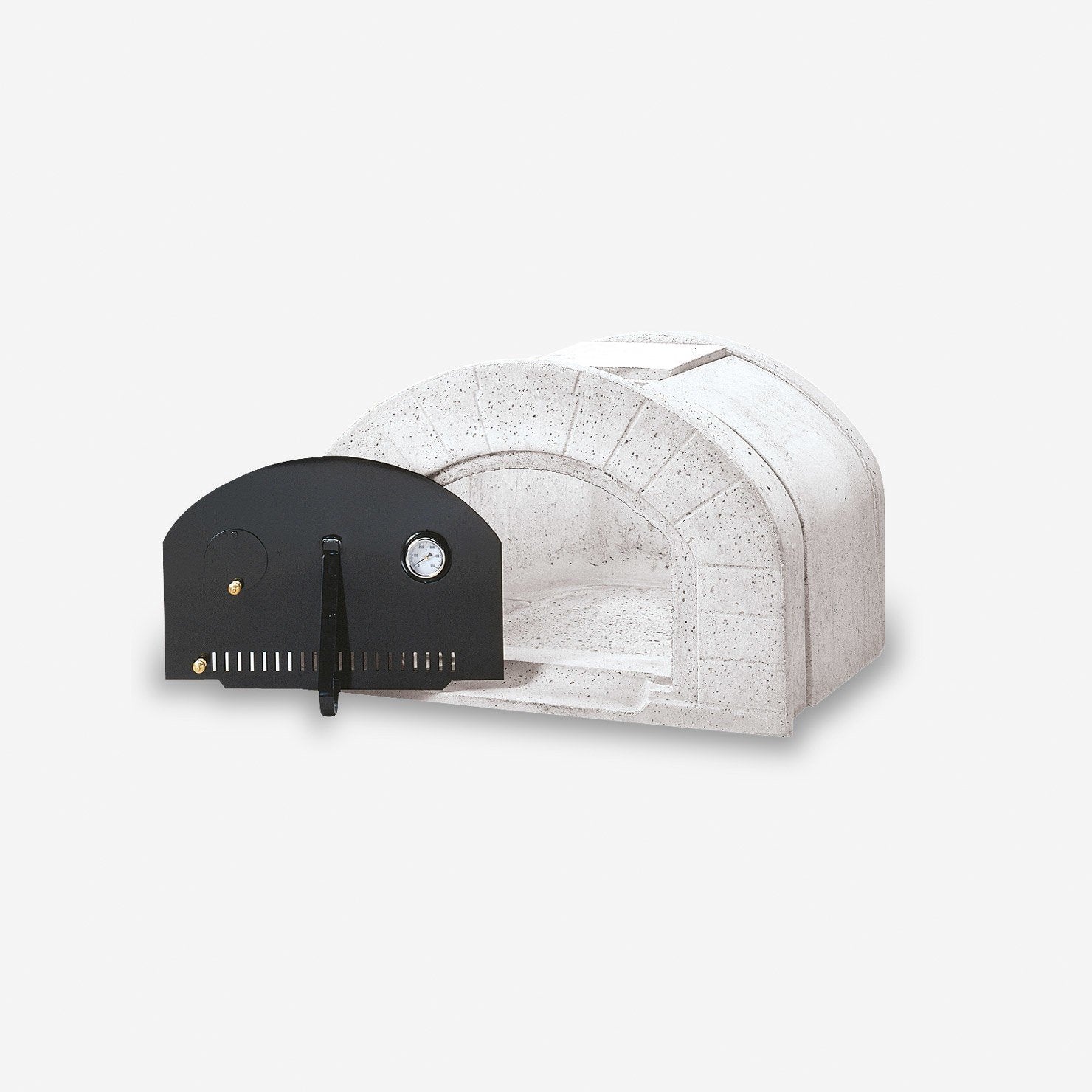 Il forno è dotato di una portina in acciaio con termometro integrato, che consente di monitorare con precisione la temperatura interna, mentre uno spioncino sulla portina permette di controllare la cottura senza disperdere calore. Questo accorgimento mantiene la temperatura stabile, migliorando ulteriormente i risultati di cottura.