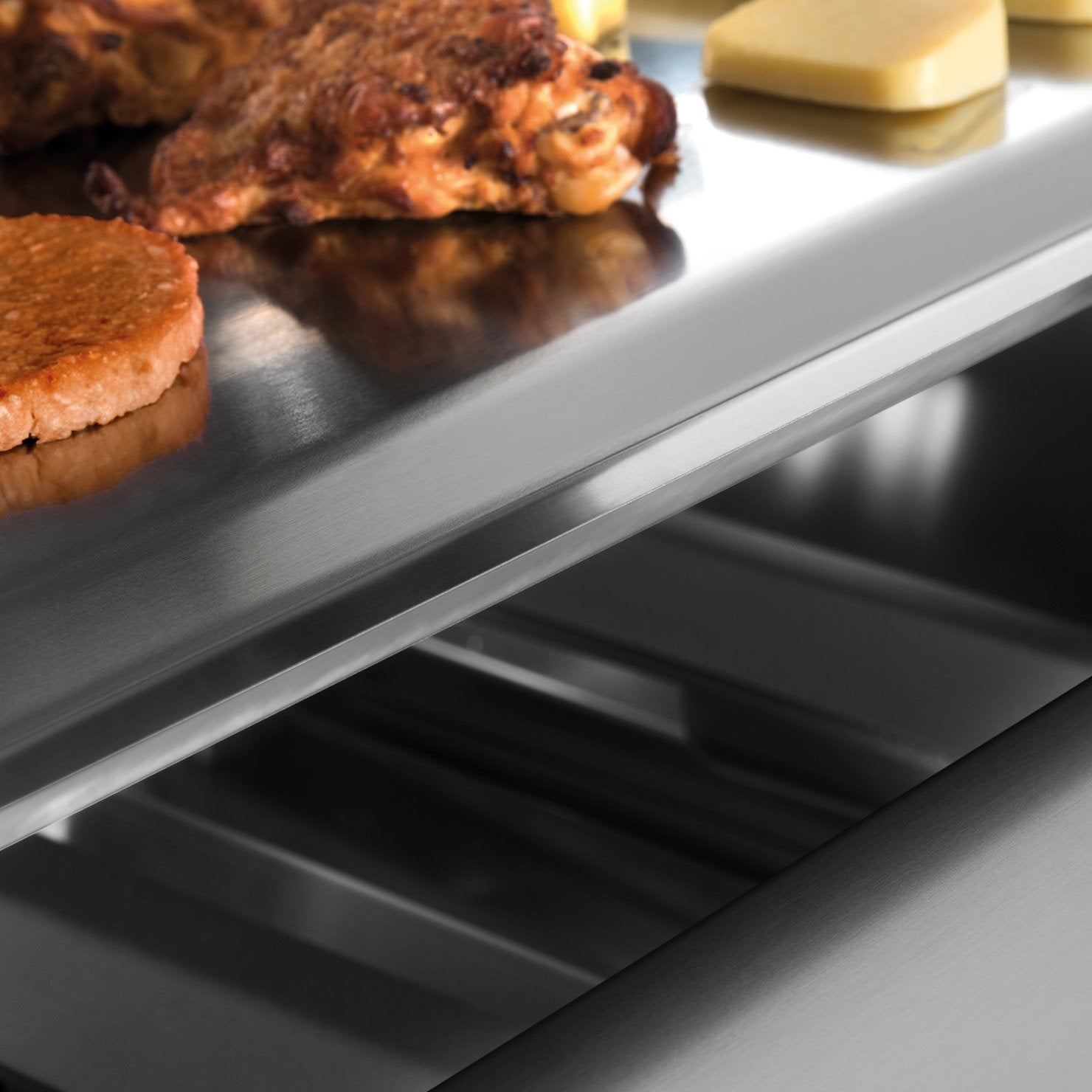 La piastra di cottura è realizzata in acciaio inox di elevato spessore ed è appositamente progettata per il sistema di cottura giapponese Teppanyaki.