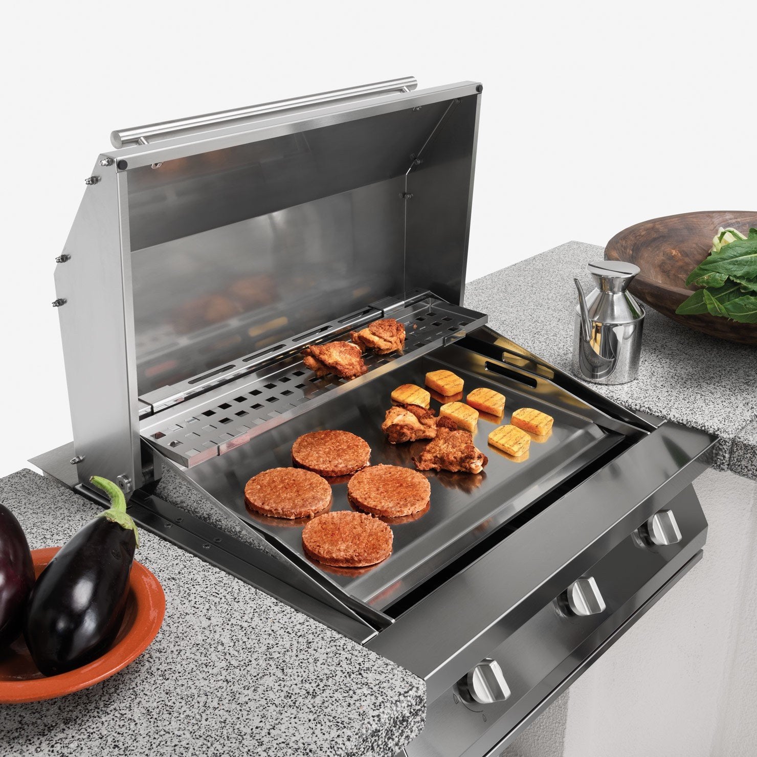 Il coperchio del barbecue dispone di uno scaldavivande integrato, che ti permette di mantenere caldi gli alimenti mentre continui a cucinare.