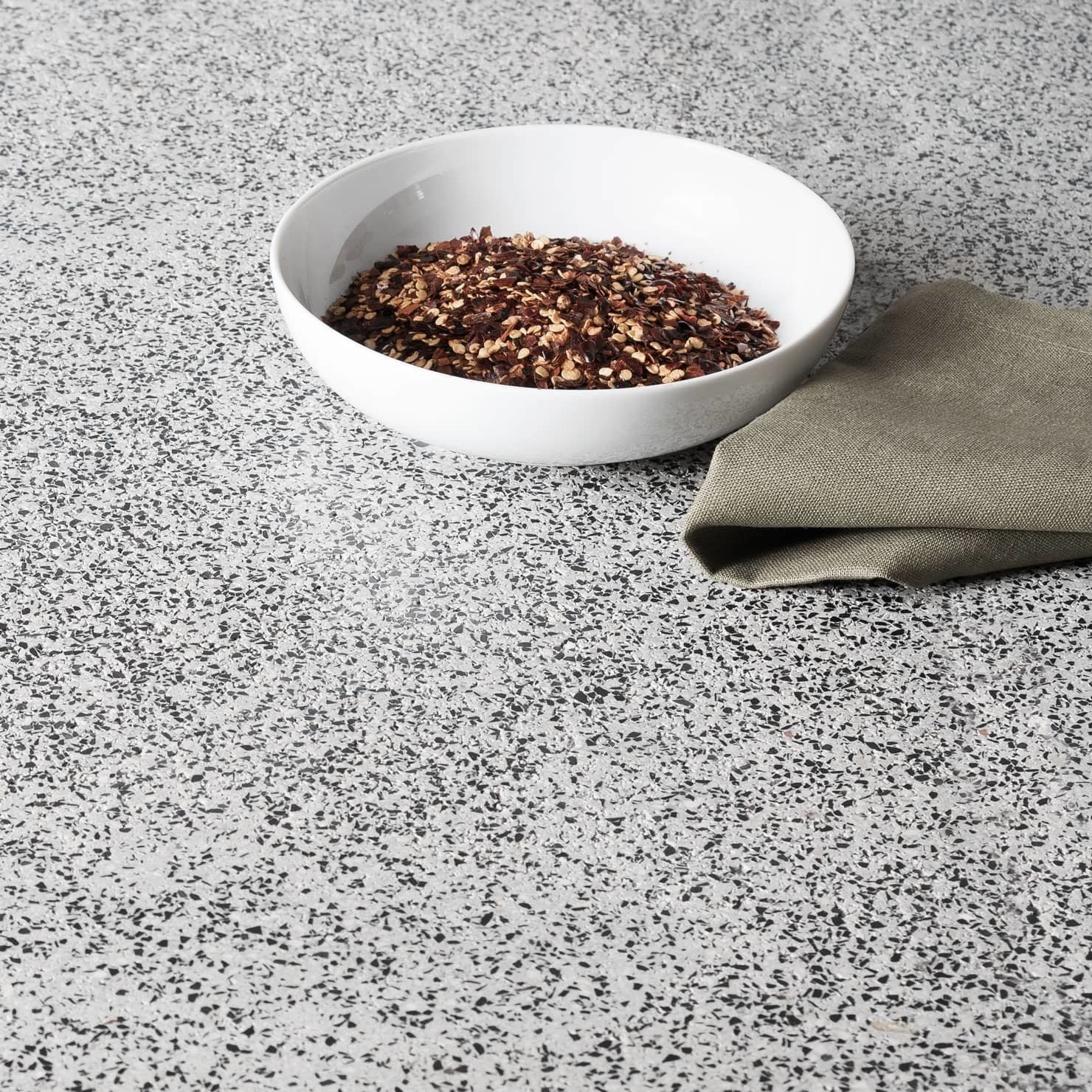 Piano di lavoro ampio: Il piano di lavoro del Lanzarote 3 è particolarmente ampio e realizzato in Marmotech levigato con finitura granito grigio. Questo offre spazio sufficiente per la preparazione del cibo e funge anche da elemento estetico.