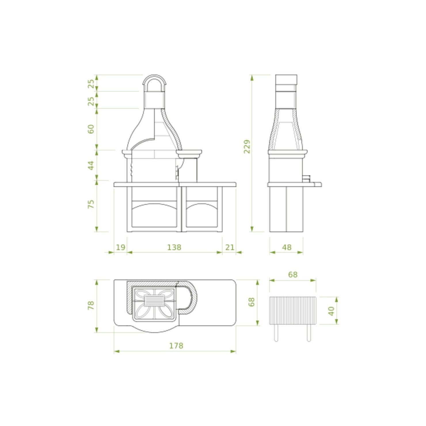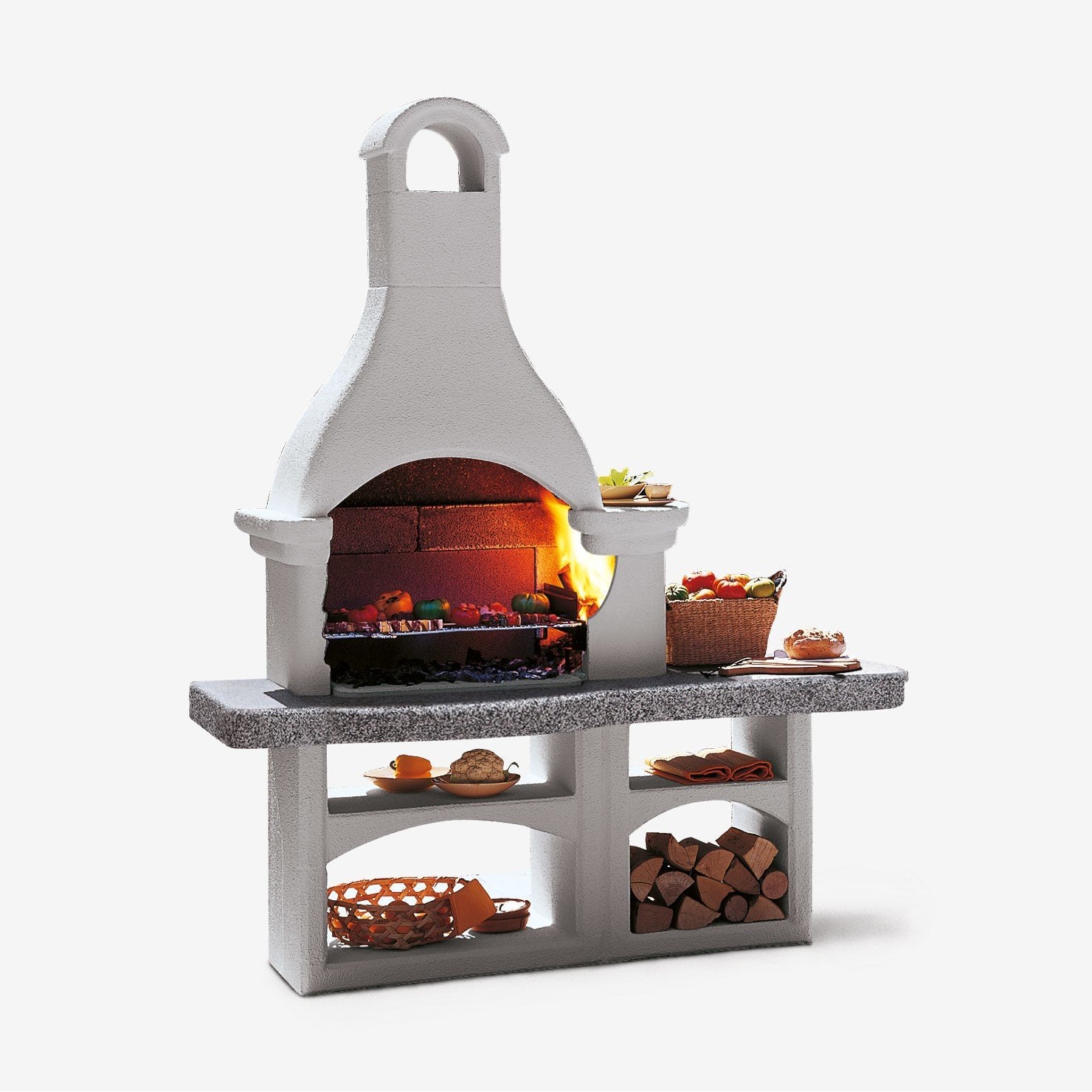 Struttura in conglomerato cementizio: La struttura del barbecue è realizzata in conglomerato cementizio, che offre solidità e durabilità nel tempo. Può essere tinteggiato per adattarsi al design desiderato.