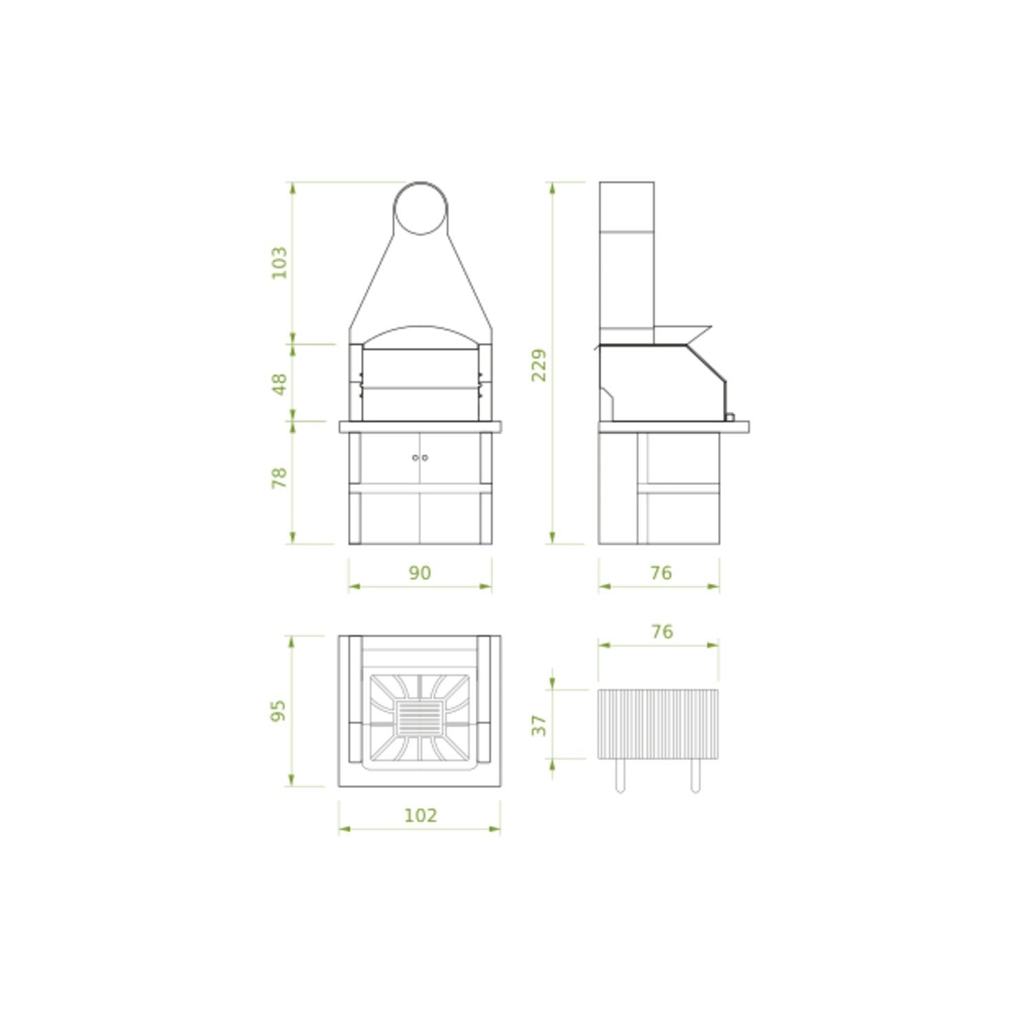 - Area grill con piano fuoco in refrattario e materassino isolante