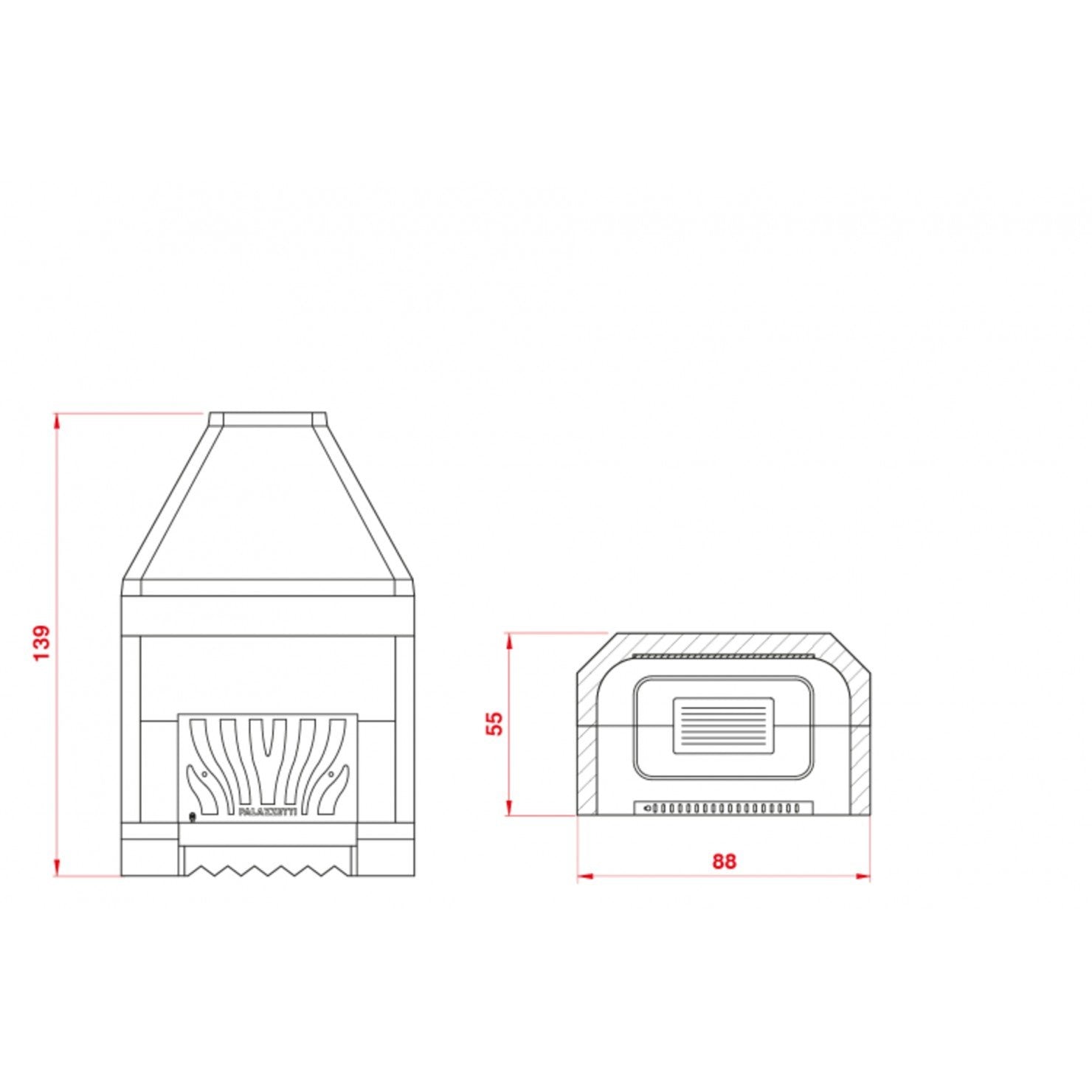 Palazzetti Patio 78 R Focolare in refrattario con cassetto cenere griglia e paretina in ghisa