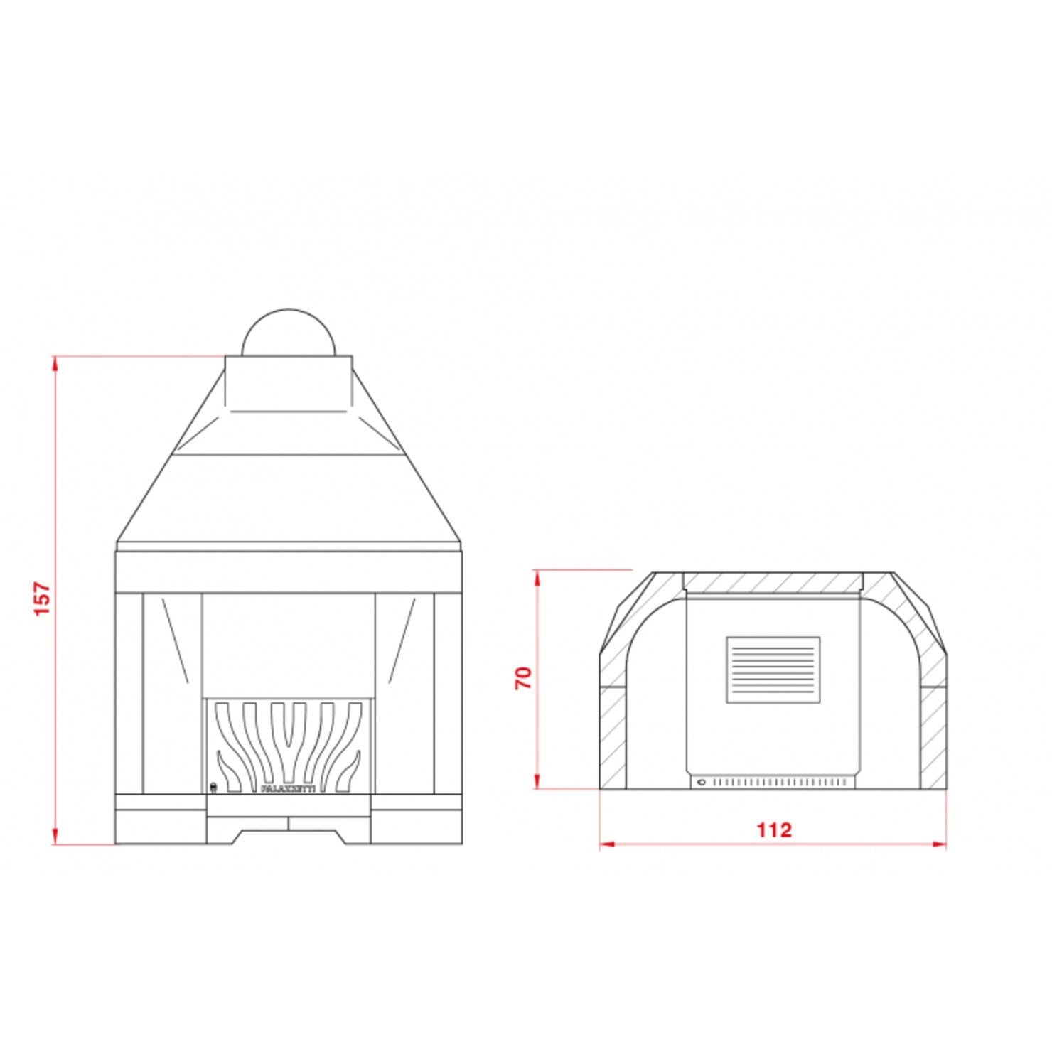 Palazzetti Patio 96 R Focolare e piano fuoco in ghisa con cassetto cenere griglia in ghisa e portalegna